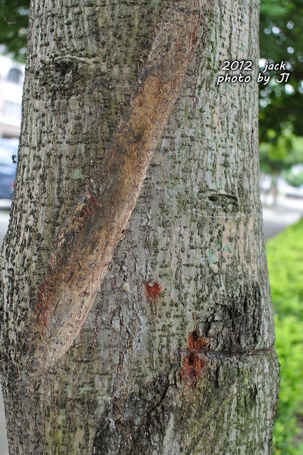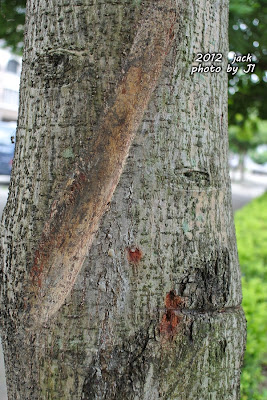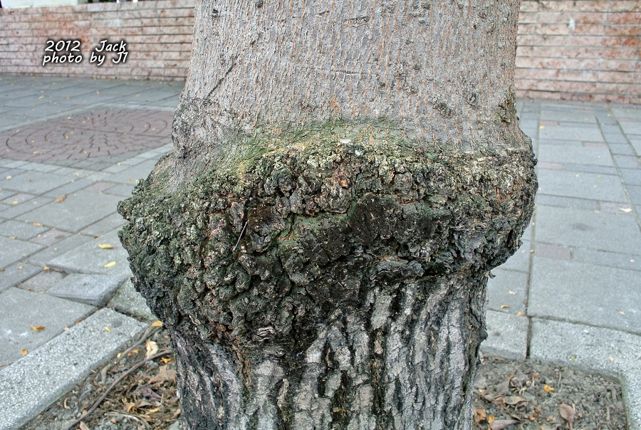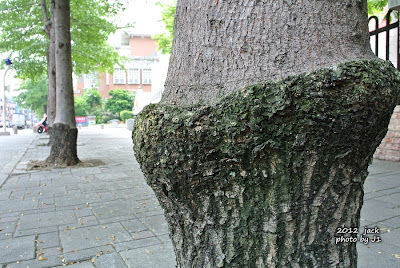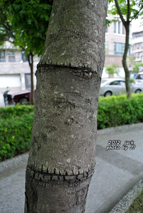 不知情的人還以為這排小葉欖仁的樹幹有一圈凸起都是正常模樣,