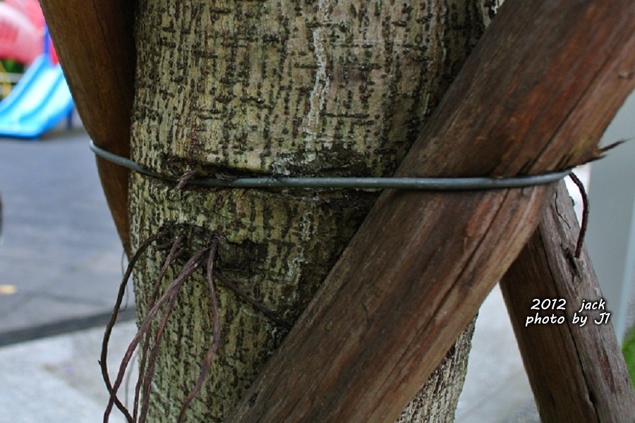 原本協助樹木順利成長的鐵絲卻成了樹木難以掙脫的枷鎖!
